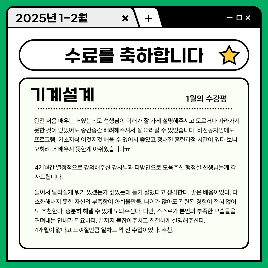 (산대특)자동차 부품 금형설계(CAD&CATIA) 및 시제품 제작(3D프린팅) 양성과정(24.9.2~25.1.15) 수강후기